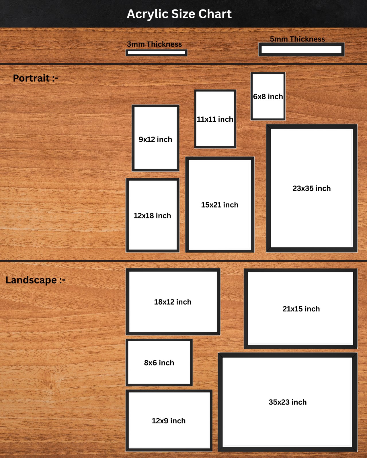 Step 1: Select your preferred photo size and acrylic thickness (3 mm or 5 mm).